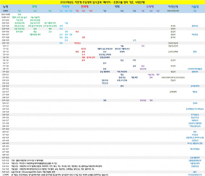 | 2023년 치과대학, 수의과대학 입결 정리(자연계) (0) | 2023.05.12 |