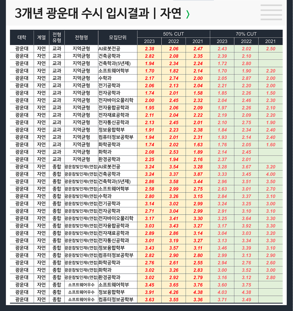 컴퓨터공학과 수시등급컷 순위 : https://cafe.naver.com/we2you/3836