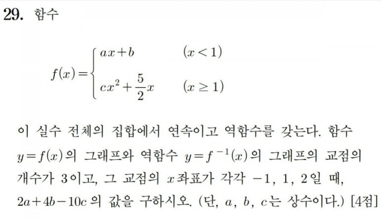 2년 뒤 수능 나형 21번에 다시금 화려하게 부활합니다. 물론 이 유형은 특성상 아이디어보다는 우직한 계산이 주가 되기에 위의 역함수 성질에 대한 이해보다는 원본 문항의 아이디어를 접하고 않고의 차이가 적긴 했지만, 그럼에도 유의미한 차이가 있었을 것임은 부정할 수 없는 사실이죠.