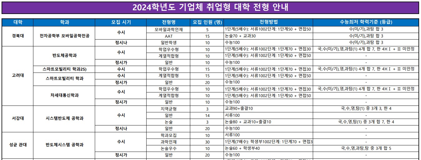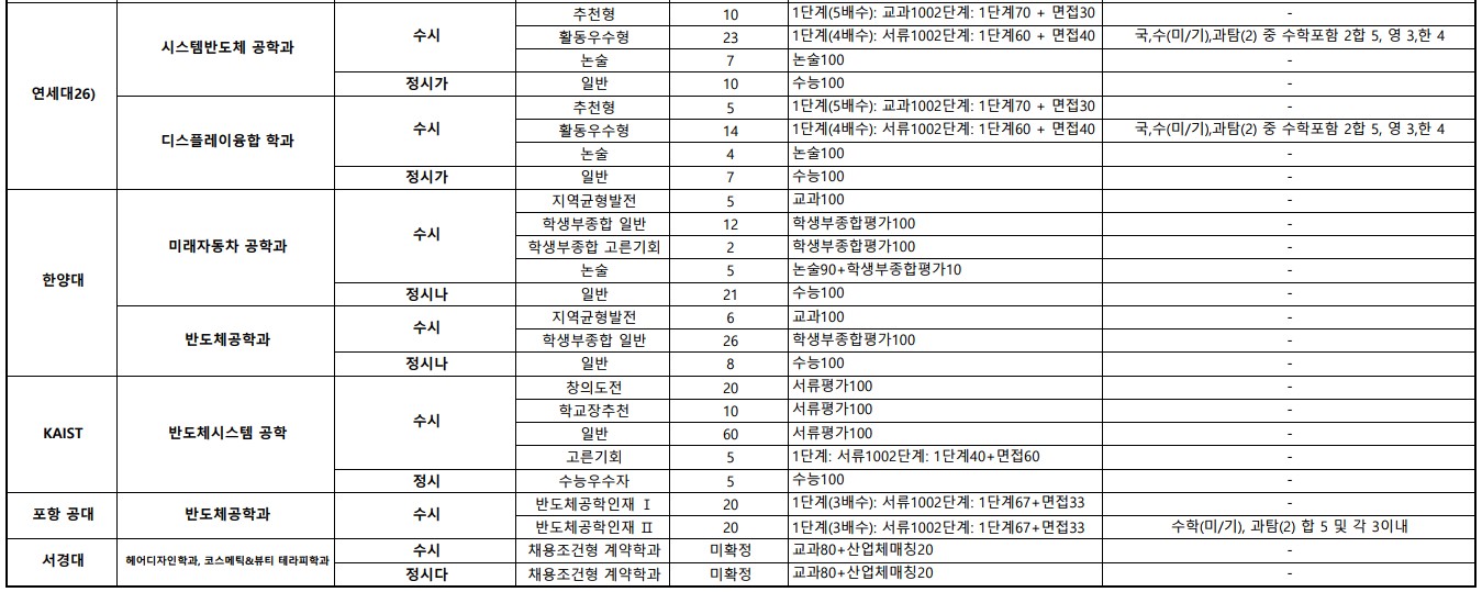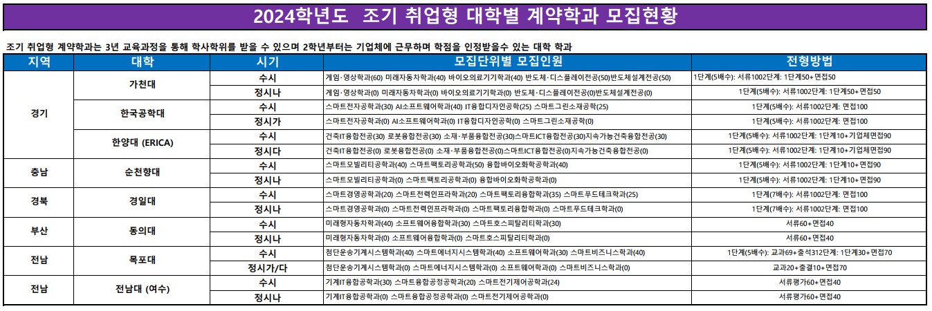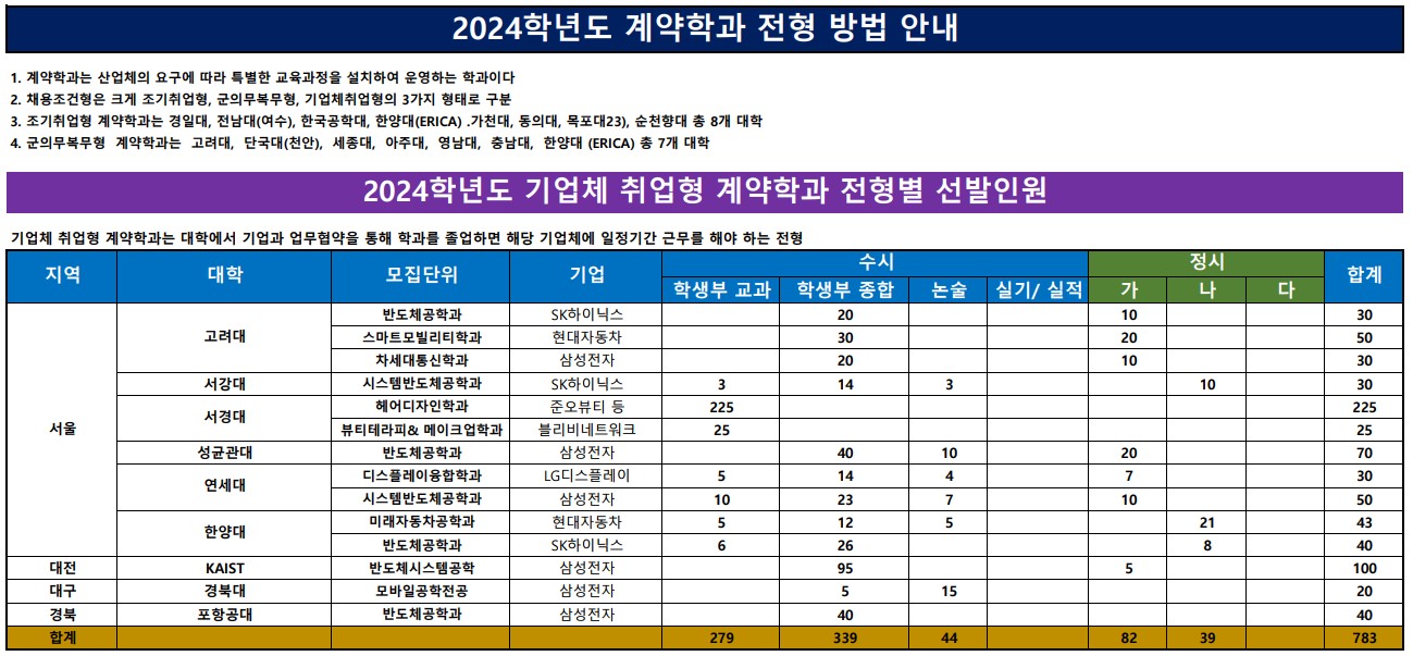 대학별 계약학과 현황과 수시, 정시 전발인원에 대해서 안내드리겠습니다.