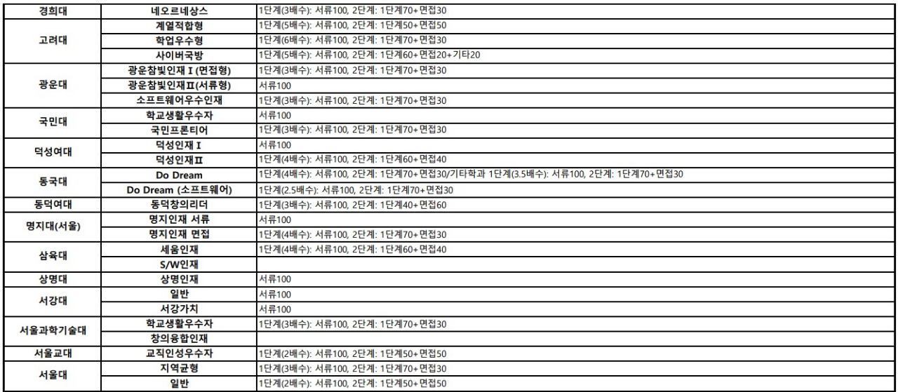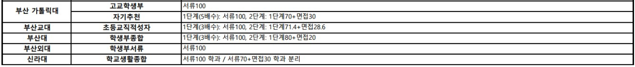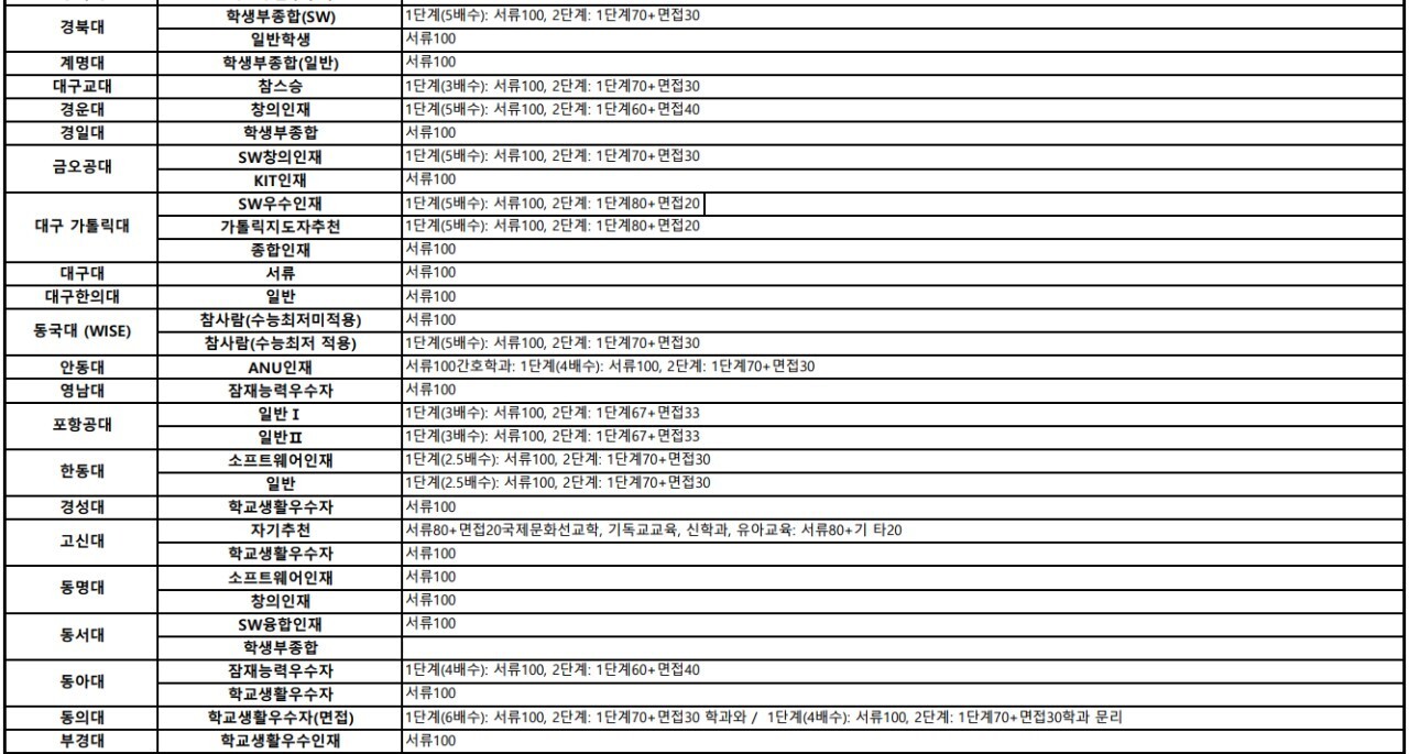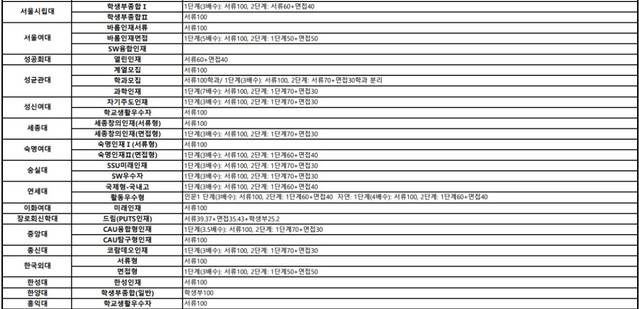 2024년 학생부종합전형 면접형/서류형 구분입니다.