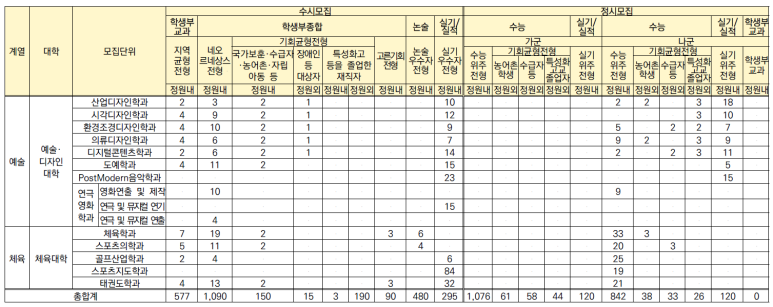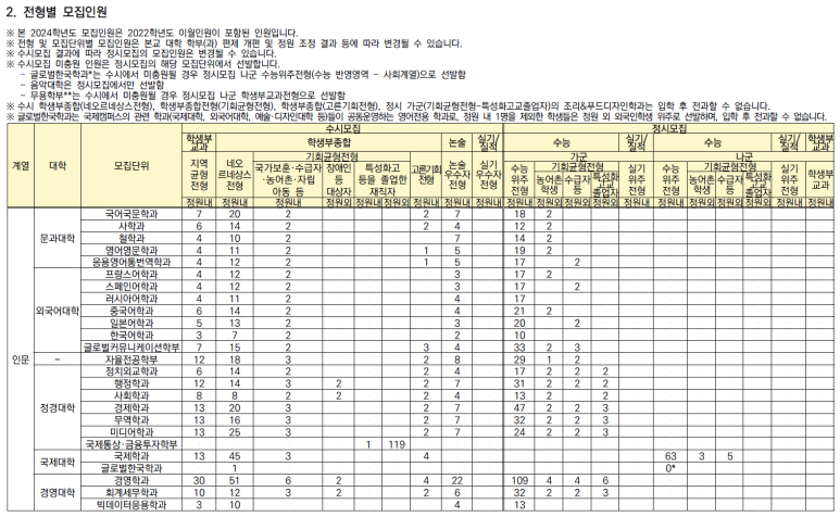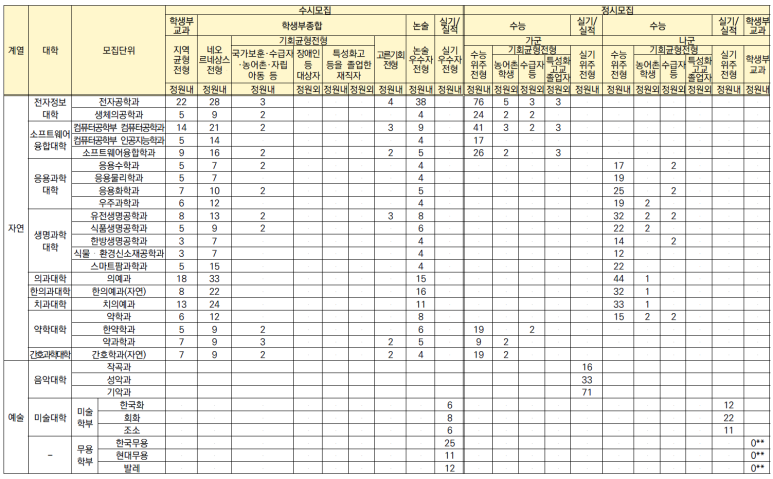 ▶ 한의예과(인문), 간호학과(인문), 지리학과(인문)에 지원시