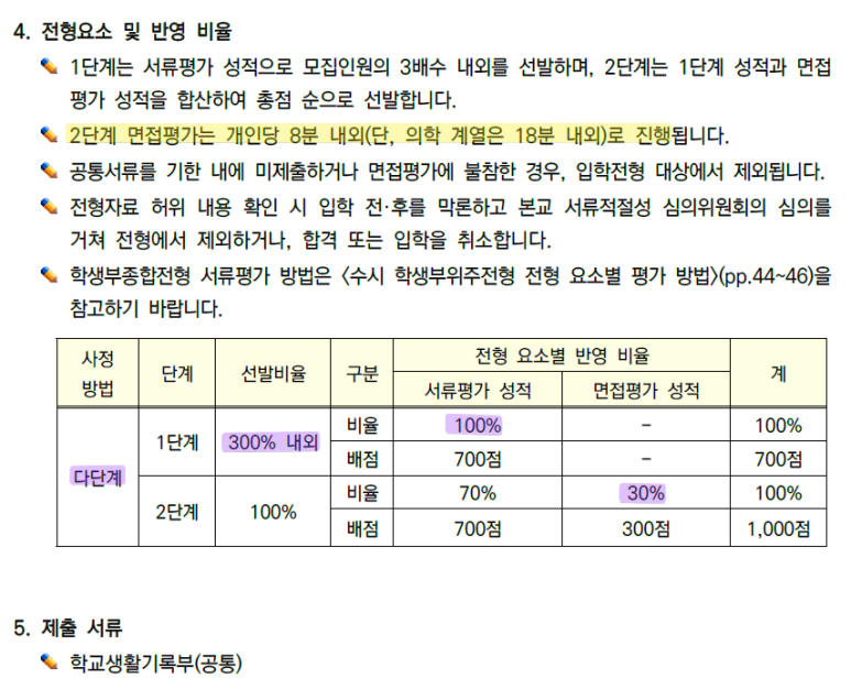 ▶ 면접평가는 개인당 8분 내외(단, 의학계열은 18분 내외)