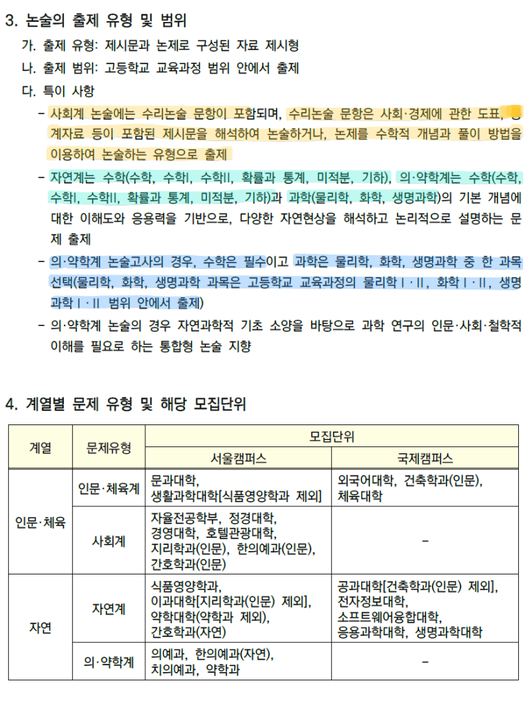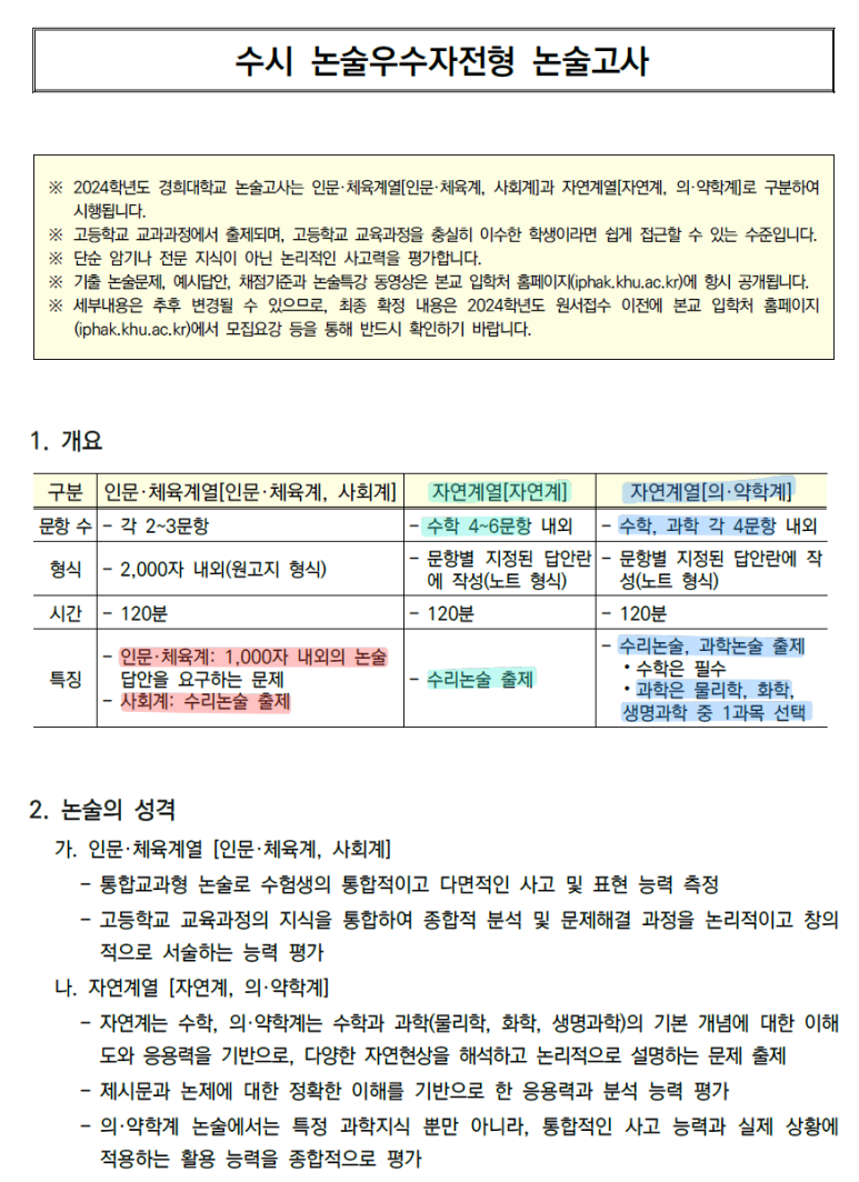 - 의학계열(의예과/치의예과/한의예과/약학과)은 수학/과학 논술 유지