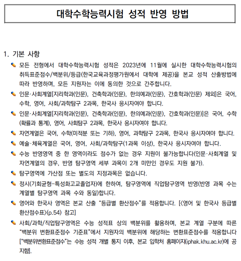 그렇다 보니, 많은 학생들이 수능 최저에 대한 부담을 덜고 경희대에 적극적으로 지원하는 편이라, 경쟁률이 매우 높게 형성됩니다.