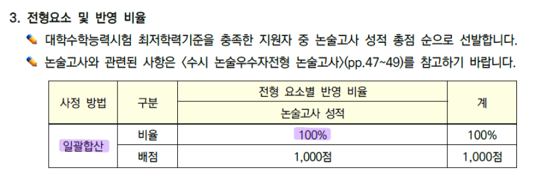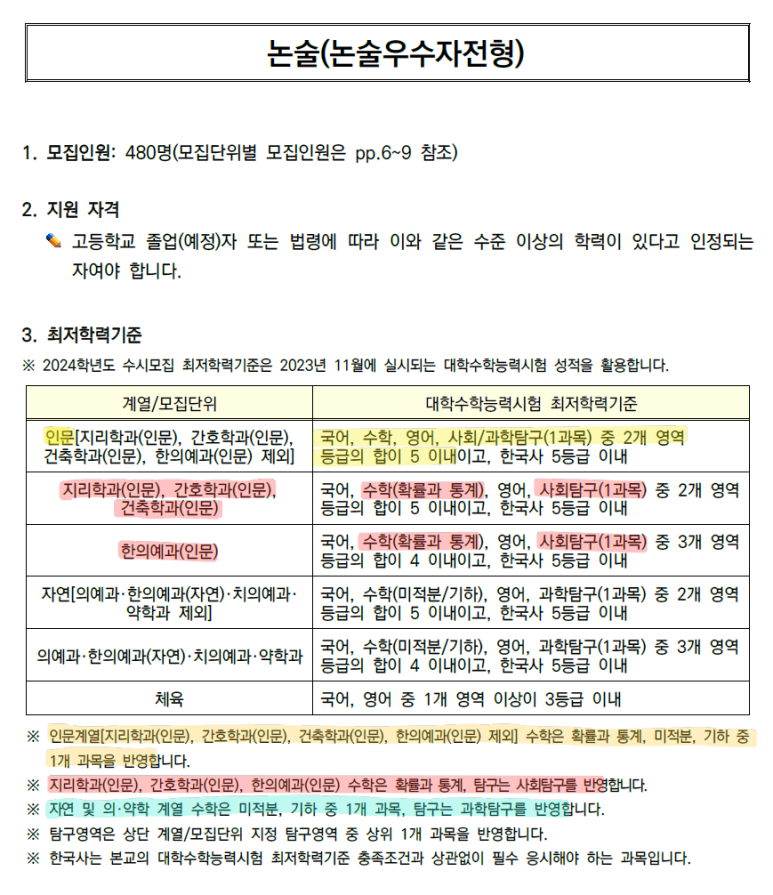▶상위권 대학 논술전형 중에서 수능 최저학력기준이 상당히 낮은 편에 속합니다.