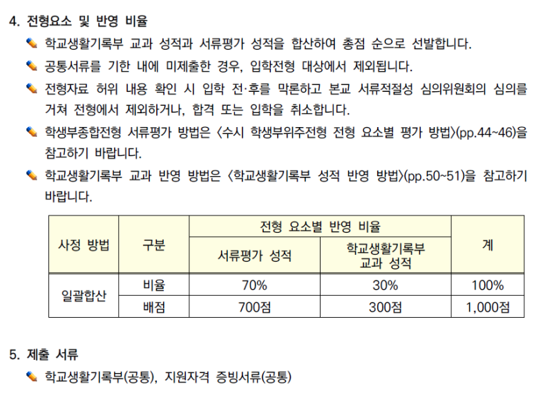 교과종합평가(서류)가 30%나 반영되는 부분은 눈여겨 봐야합니다.