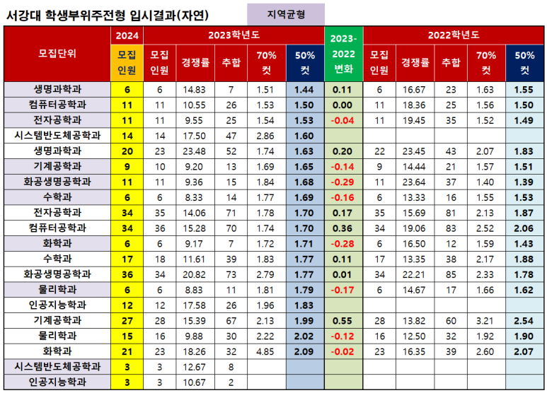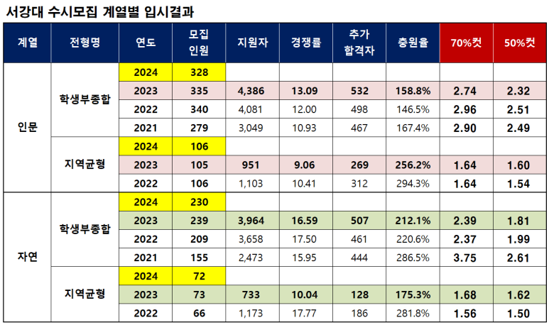 서강대 모집단위별 입시결과