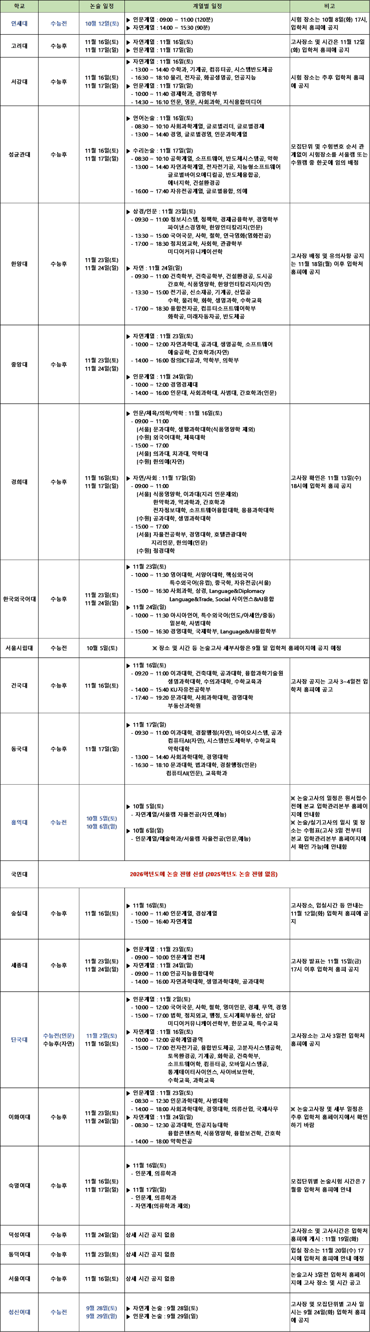 | 성균관대 | 수능후 | 11월 16일(토) 11월 17일(일) |
