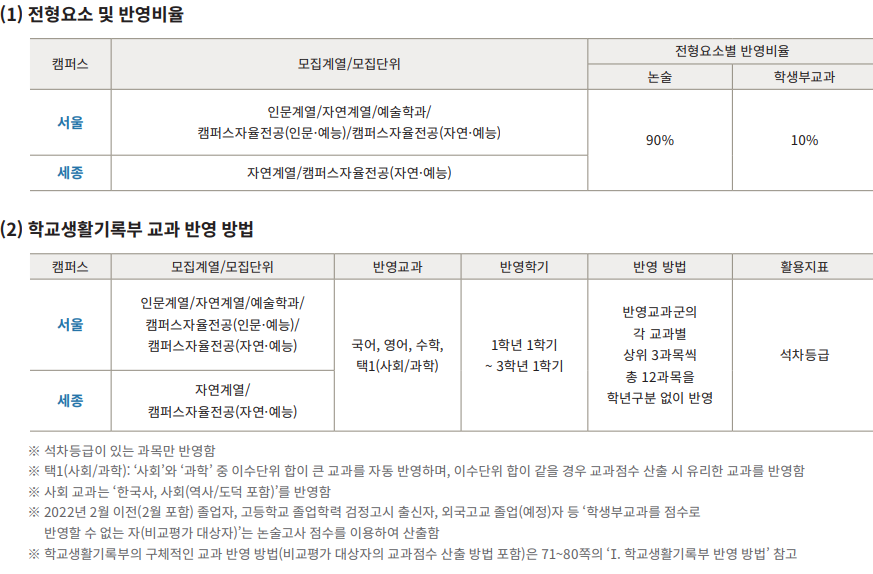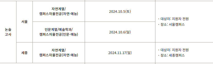 - 서울캠 자연계열/캠퍼스자율전공(자연·예능) : 2024.10.5(토)
