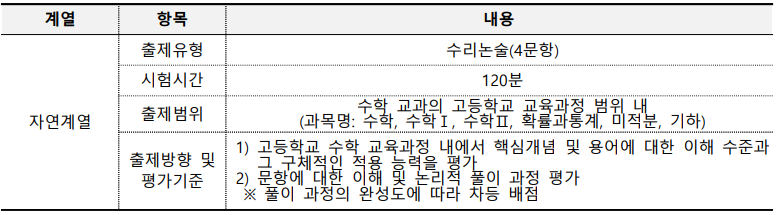 ※ 장소 및 시간 등 논술고사 세부사항은 9월 말 입학처 홈페이지에 공지 예정