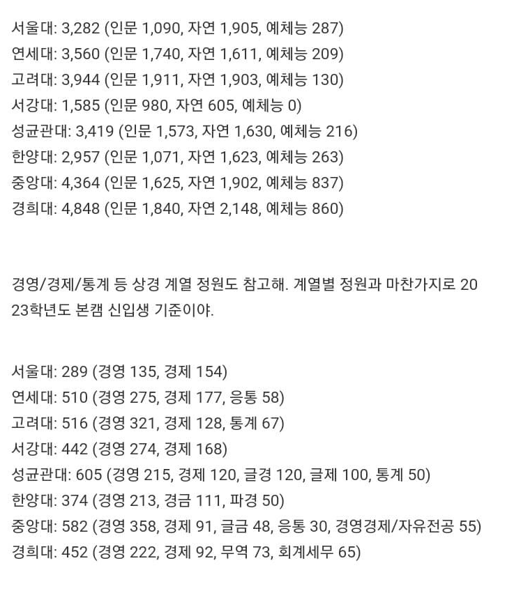 연대 미래, 고대 세종, 한양대 에리카는 분교로 미포함
