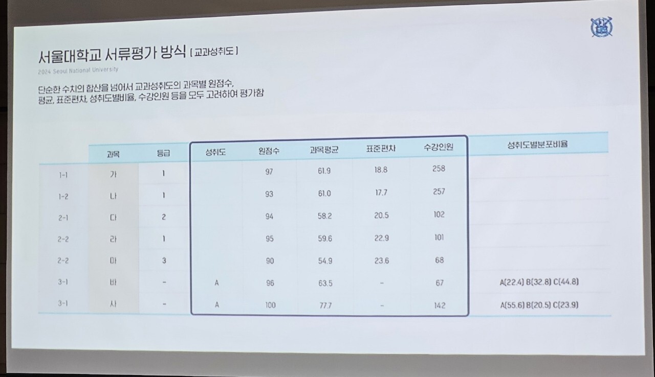 입결은 등급이 아니라 서류평가로 뽑아놓고