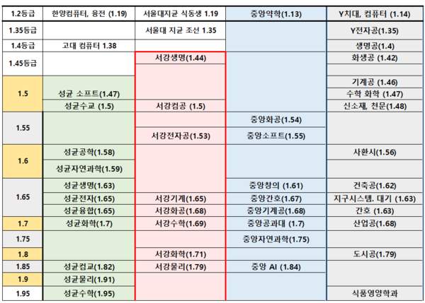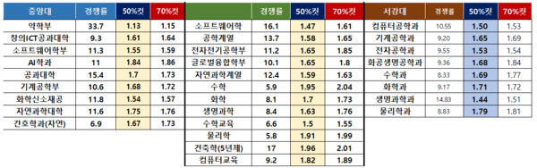성균관 서강 중앙대는 자연계열 모든 학과를 다뤘습니다.