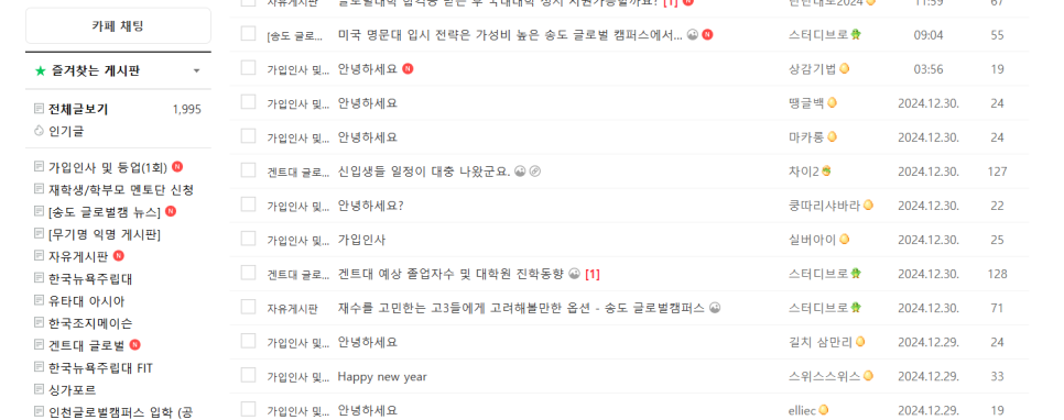 안녕하세요, 해외 대학 진학을 꿈꾸는 송도 지역의 학생과 학부모 여러분들을 위한 정보 공유 공간인 "스터디브로 네이버 카페"를 소개합니다. 송도에 위치한 한국뉴욕주립대, 한국조지메이슨대, 유타대 아시아캠퍼스, 그리고 벨기에의 겐트대학을 지원하는 학생들과 학부모들이 함께 모여 교류하고 정보를 나누는 공간입니다.
