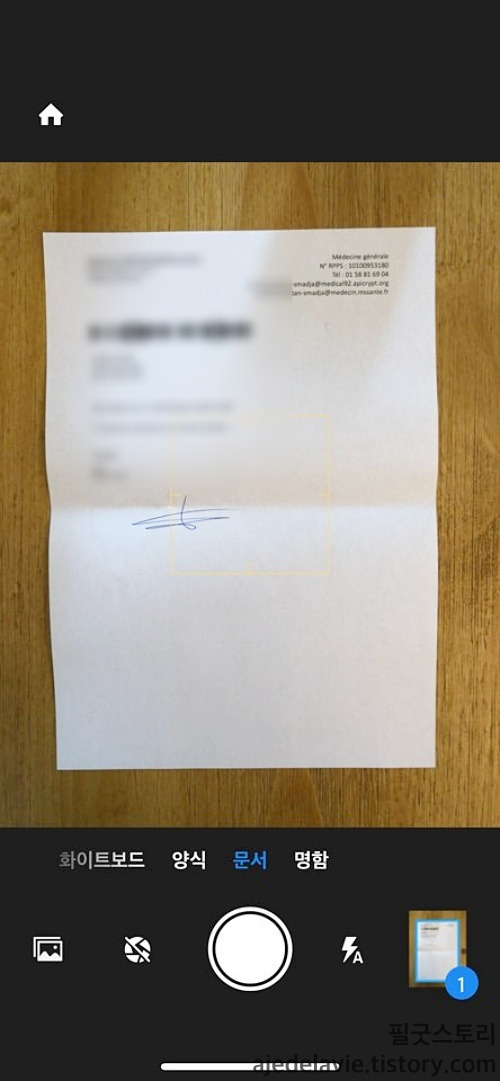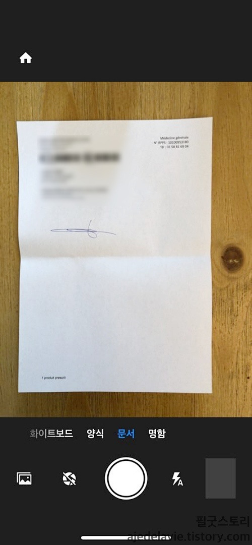 카메라 모양을 누르면 바로 문서를 촬영하는 화면으로 이동하는데, 문서를 최대한 빳빳하게 펴고 촬영 버튼을 누르기만 하면 끝. 정말 끝.