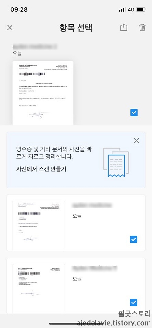 최근 스캔 보기를 통해 원하는 문서들을 확인 후 선택할 수 있다.