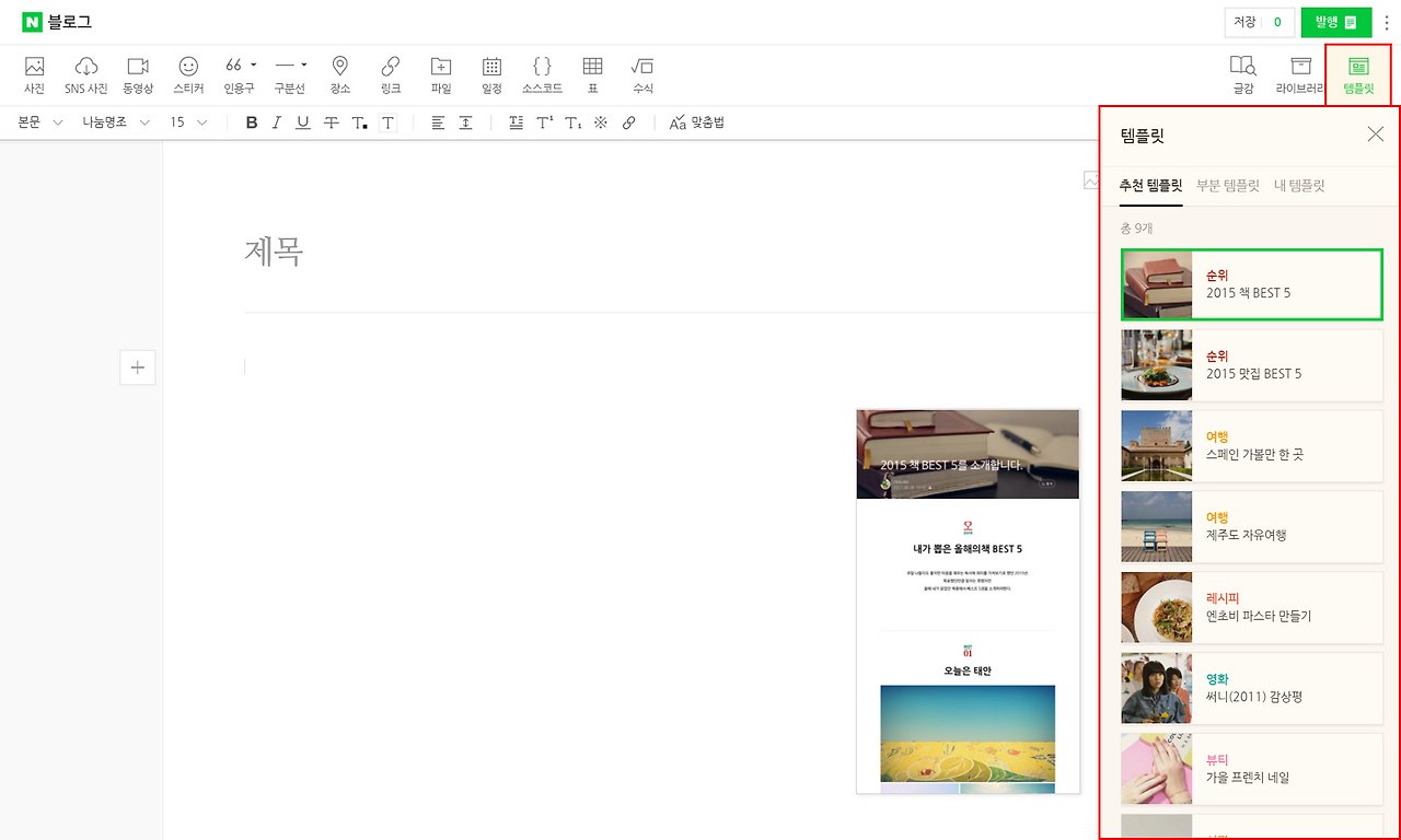 글을 조금 더 쉽게 작성할 수 있도록 미리 꾸며놓은 템플릿도 있다.