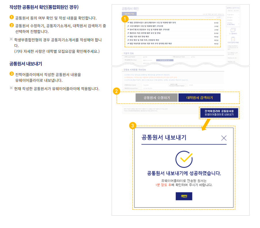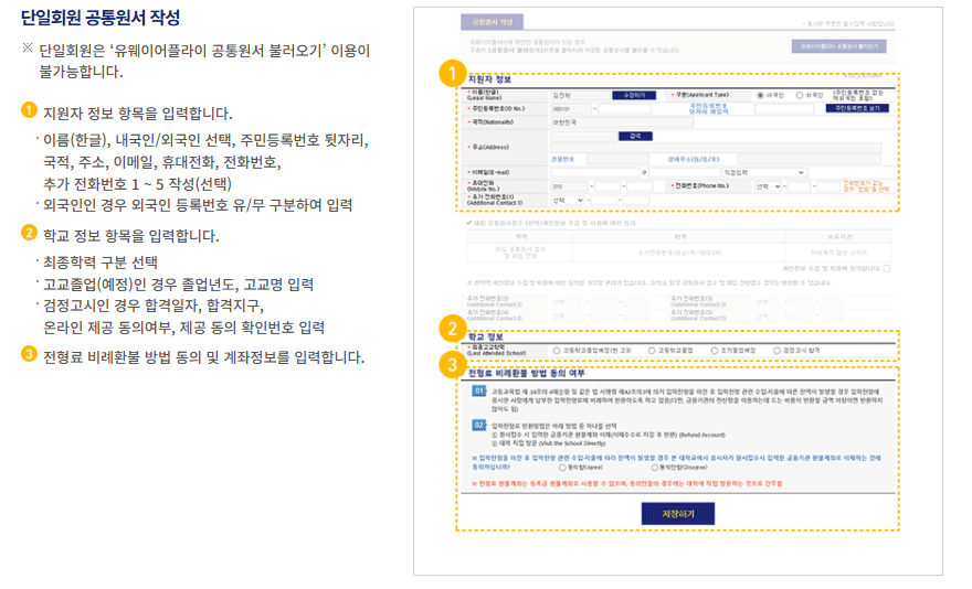 - 일부 대학은 PDF 업로드 형식, 일부는 온라인 직접 입력