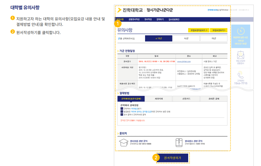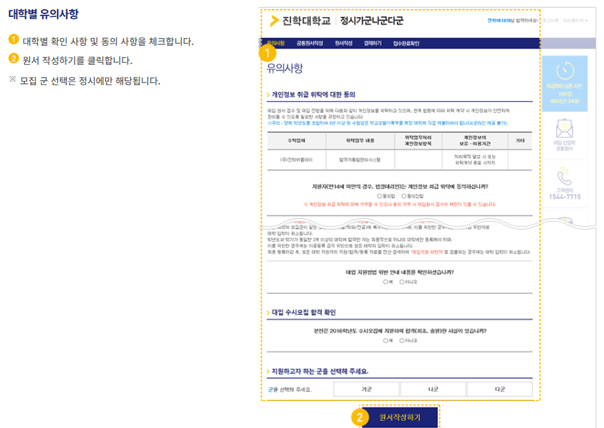 1. 원서 접수 기본 절차 (진학사 어플라이 & 유웨이 동일)