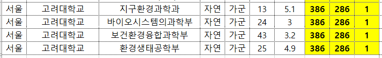 22 정시 고려대 학과 순위 & 배치 표준점수