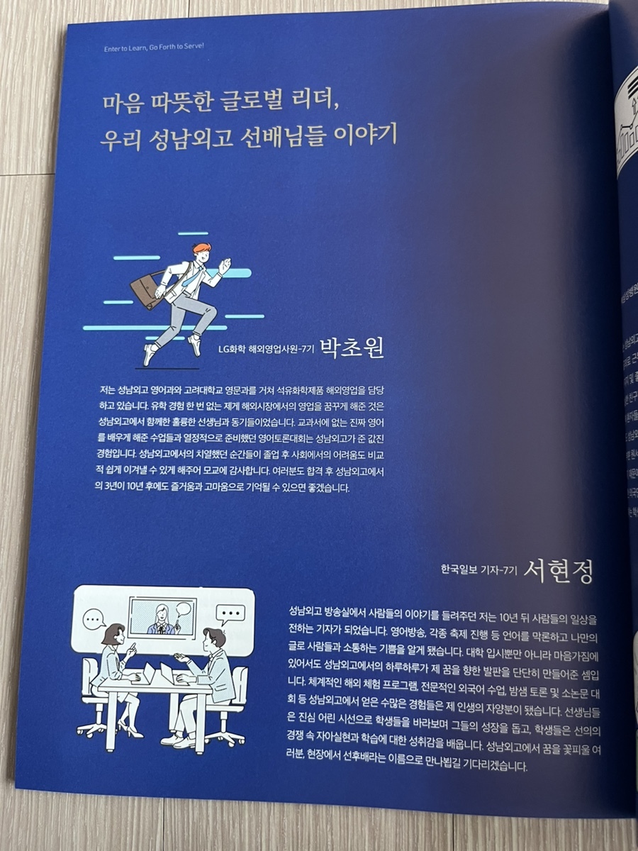 졸업생들이 사회 각계각층에서 활약하고 있군요.