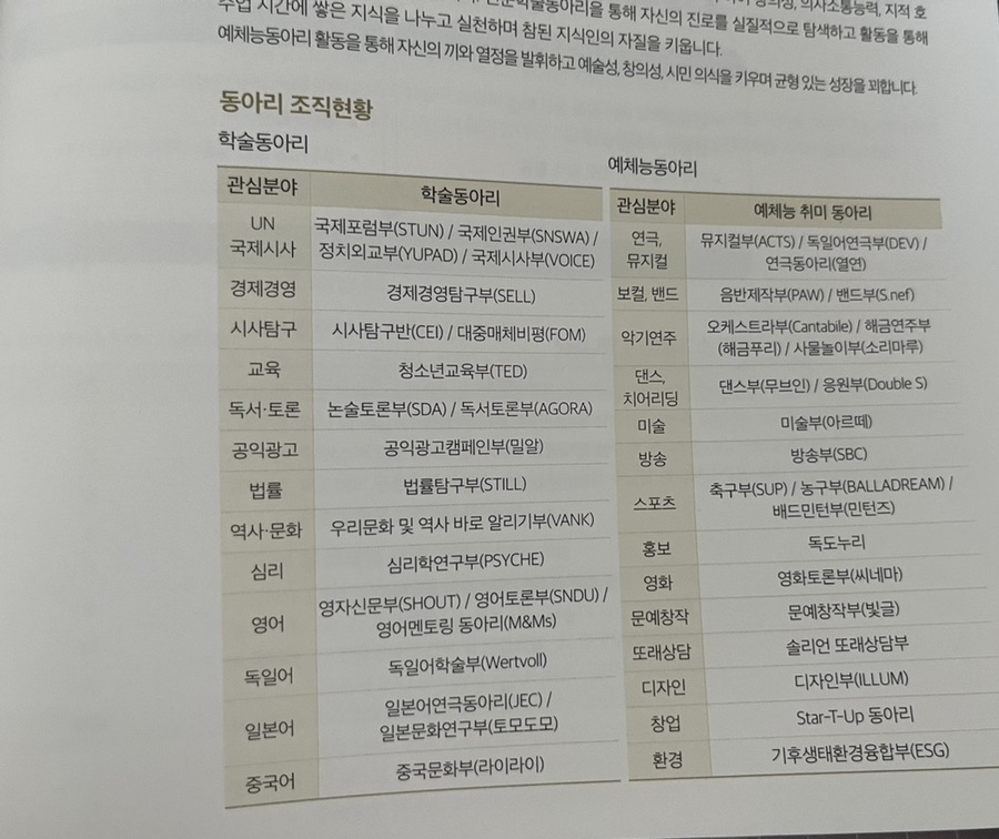 학술동아리와 예체능동아리
