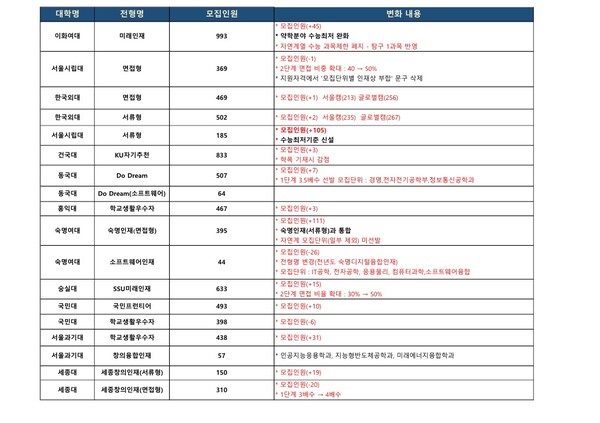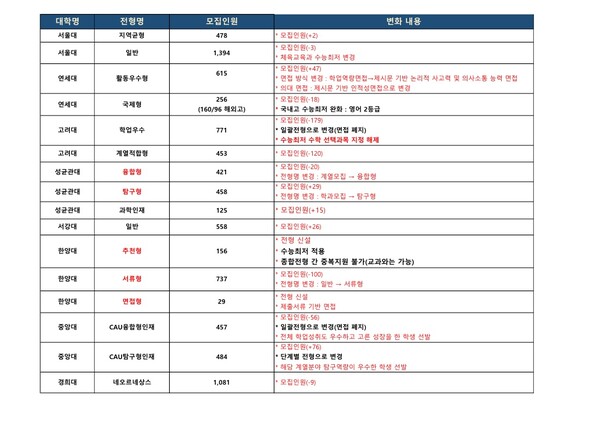 변화가 적으면 같게 보면 되고 변화가 많으면 해당대학과 앞뒤로 주는 영향을 따져보아야 합니다. 변화내용중 특히 중요한 것은 검정색으로 표시했습니다.