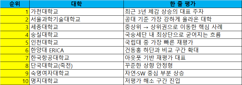 ✔ 지금 오르는 대학 → 전략적으로 활용