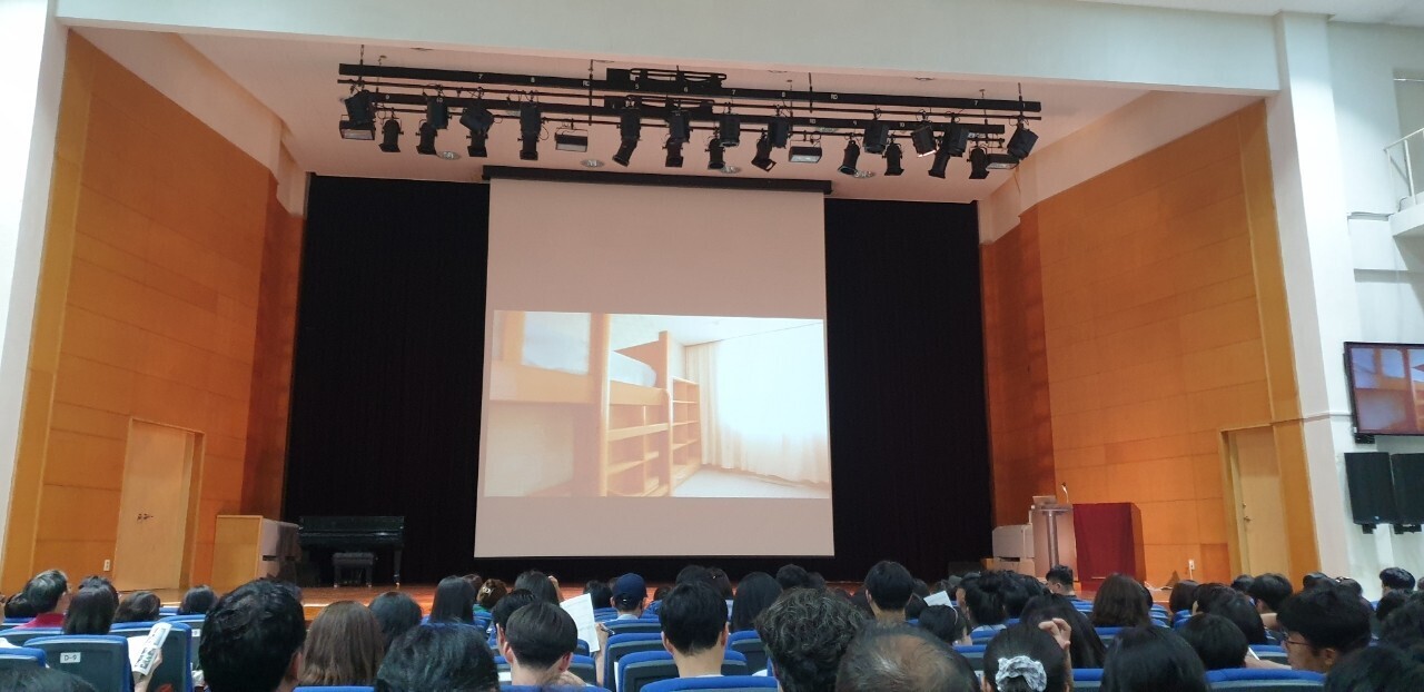 정문앞에는 남자 기숙사이고 그곳에서 강당까지 올라가는 언덕이 상당함