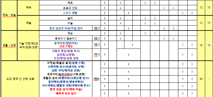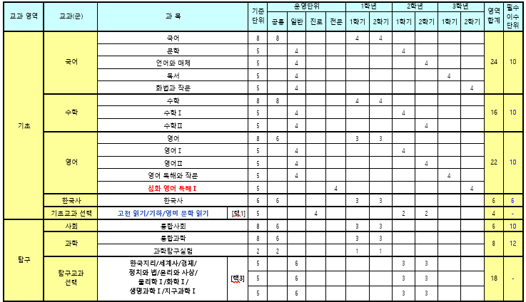 교육편재를 보면 탐구교과 선택은 2학년때 3학점, 3학점으로 과학1의 2과목을 선택할 수 있다.