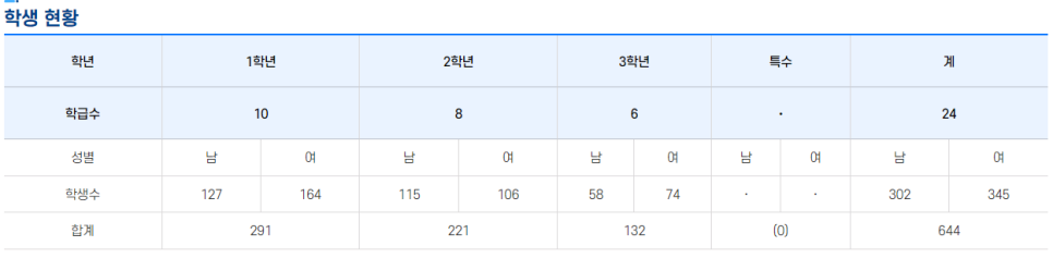 '24년 졸업생의 경우 효성고와 거의 비슷한 숫자이다.