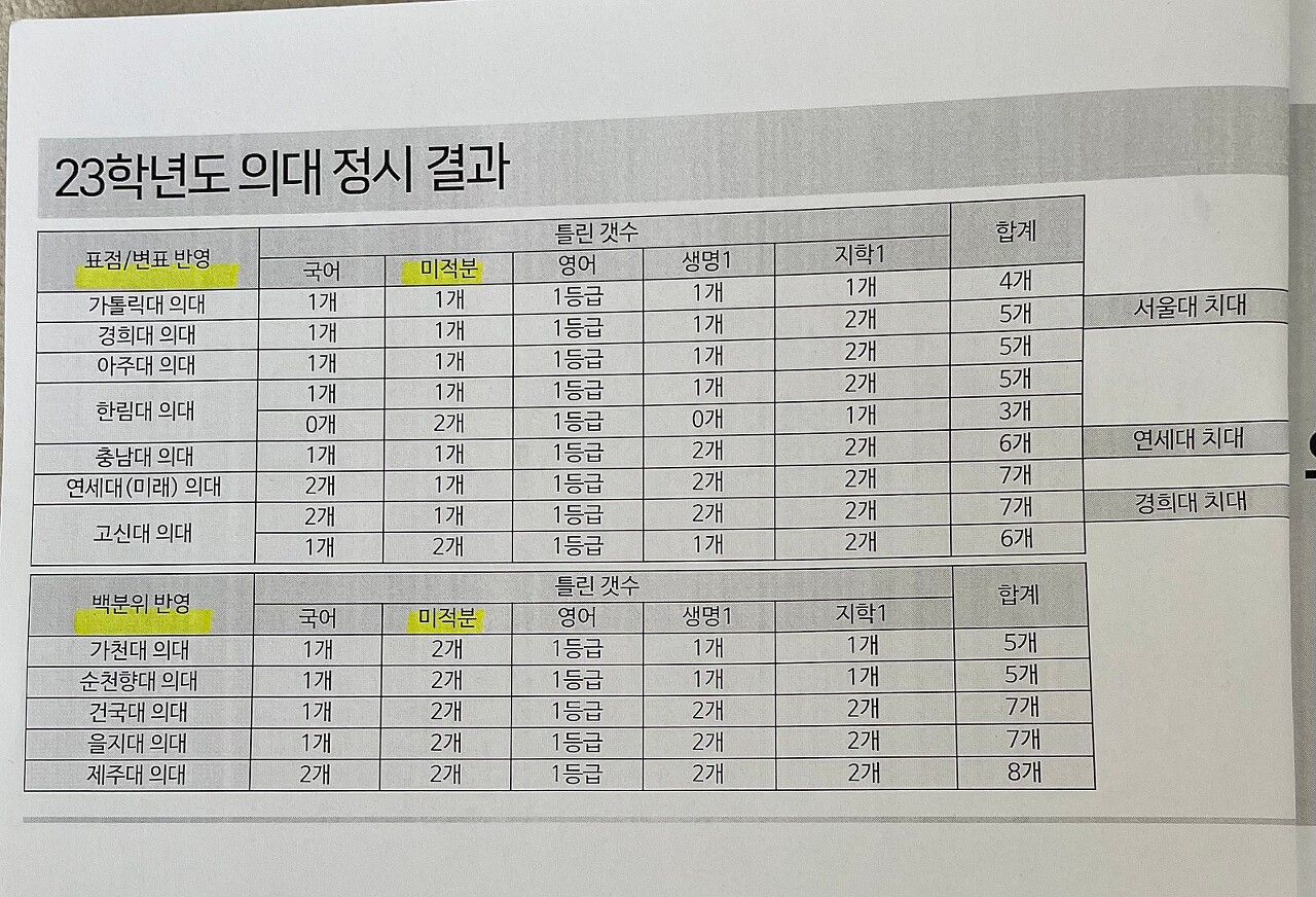 정시로 의대를 가려면 수학을 1개이상 틀리면