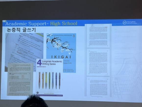 도서관에 비치된 도서는 약 3만 6천여권으로, 그 중 영어원서가 9천권정도 된다고 합니다. 청심은 수행평가의 비율이 타 교육시설보다 월등히 높은 편인데(80프로/ 백분율기준), 수행평가 기간엔 도서관에서 자료찾고 필요한 자료 출력도 하며 학생들이 알차게 이용한다고 합니다.