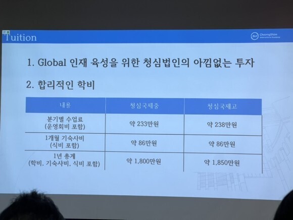 마지막으로 청심은 학비가 얼마일까요?