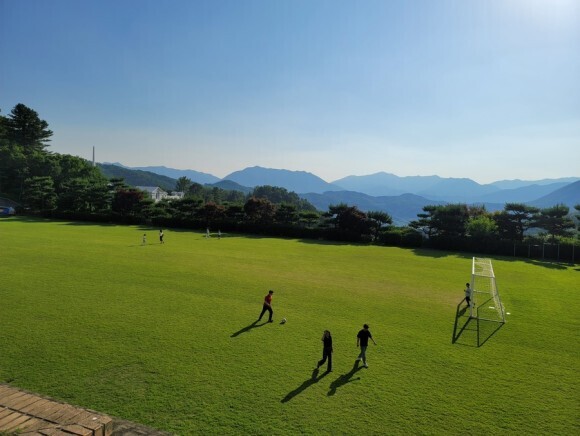 학교 운동장에 천연잔디로 관리된 게 인상적입니다. 한국에서 잔디가 저렇게 파릇파릇하기 힘든데 저 잔디위에서 맘껏 축구하는 아이들보니 부럽습니다.