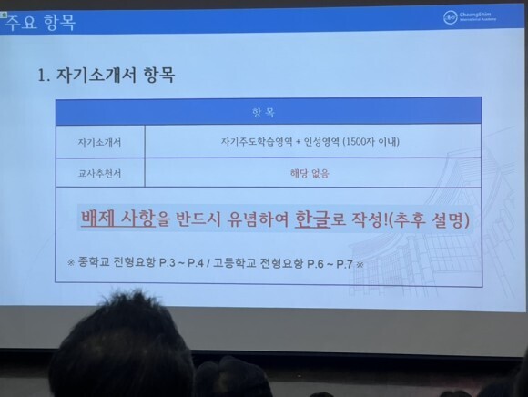 중, 고등 공통으로 자소서 배제사항입니다. 학교 이념에 맞춘 기승전결이 잘 갖춰진 학생의 성장에 대한