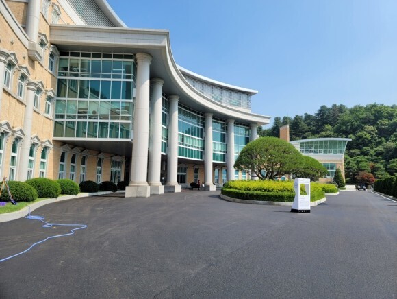 체육관인데요. 청심 친구들은 중고등 모두 태권도가 체육 필수과목 이라고 합니다. 실제 홍보영상에서 저 체육관에 친구들이 도복입고 모여 태권도하는 장면도 있었는데, 인도어 스포츠는 저 체육관에서 이루어지는 것 같습니다.