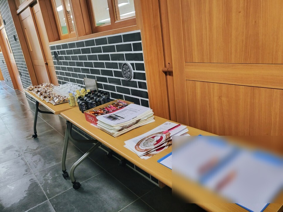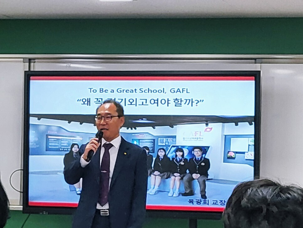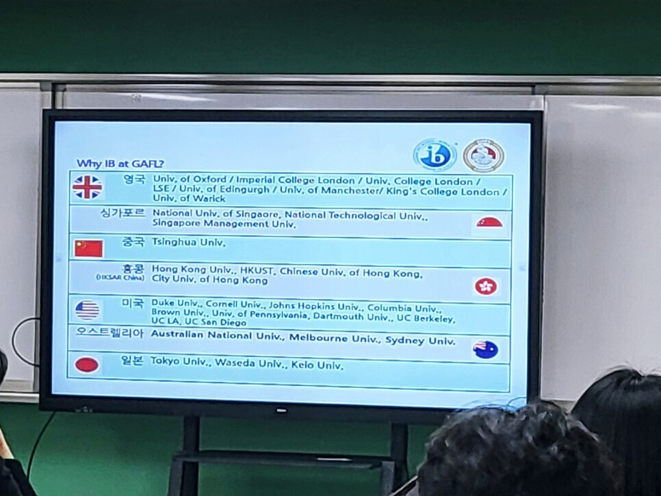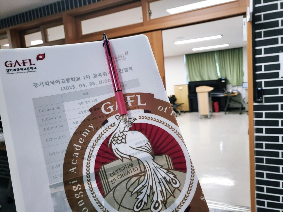 간단한 다과와 학교 안내 자료 배부와 더불어 경기외고 학생들의 유창한 외국어 실력의 동영상이 틀어지며 시작합니다.