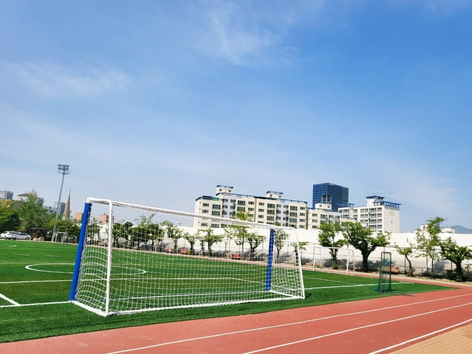우리 아이들의 교육에 관심이 많은 분들이 참여하는 간담회이기에 설명회 안내, 준비, 내용등이 알찰 것이라 생각하며 설명회 장소로 이동합니다. 간담회 장소로 이동하는 길에 보이는 운동장이 멋지네요. 학비가 비싼만큼 시설 투자도 멋지게 한듯 합니다.