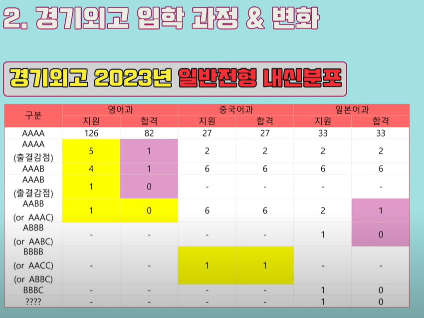경기외고의 입학전형을 보면 기본적으로 영어내신성적이 가장 중요하지만