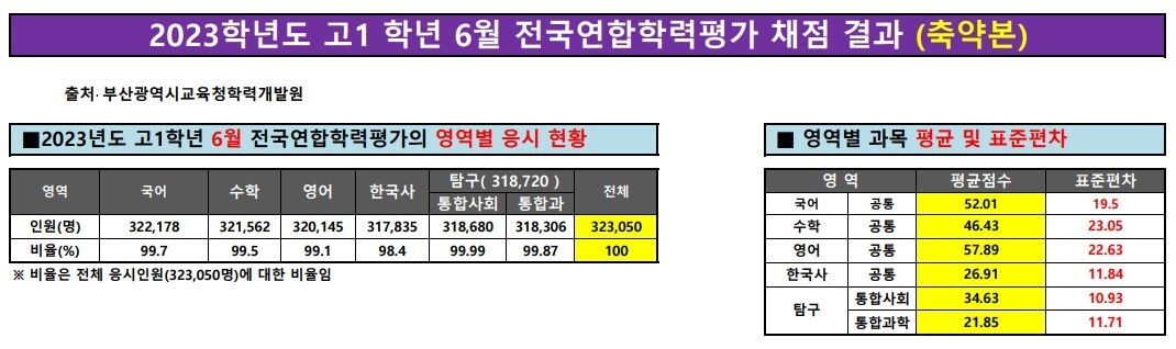 <2023학년도 고1학년 6월 전국연합학력평가 채점 결과 (축약본)>