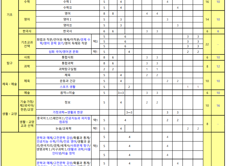 과학은 생명과 화학위주로 수강을 한다고 한다.