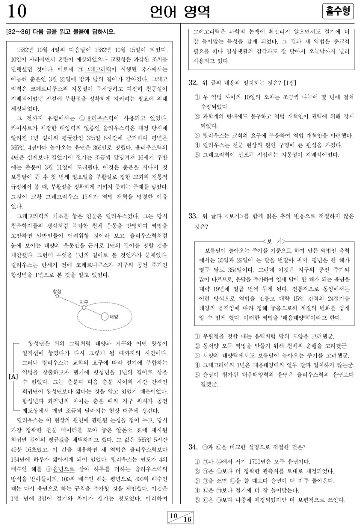 16학년도까지 역대급 지문으로 분류되었던 그레고리력 지문