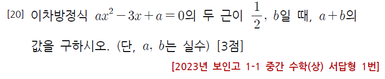 따라서 b=2가 되고, 두 근의 합은 5/2이므로 a의 값을 구해주세요.