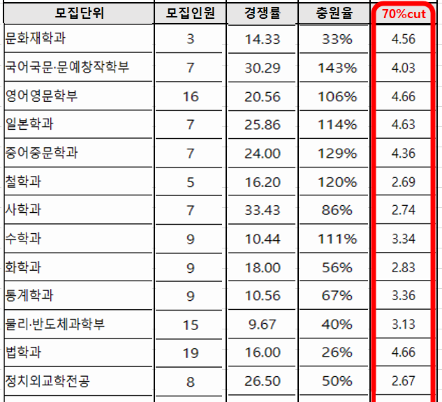 * 소수 모집인원 학과는 성적 자료가 제공되지 않을 수 있음