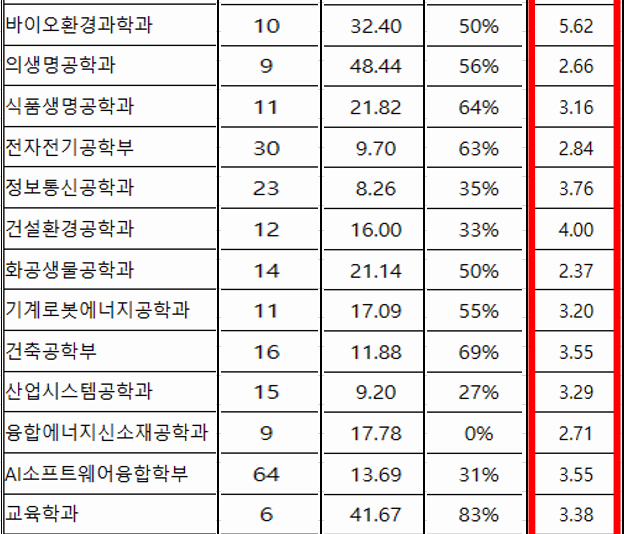 화학생물공학 2.37 ~ 바이오환경과학 5.62