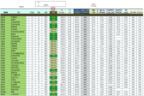 이제 수학이 71점입니다. 그래도 여전히 광운대 단국대 문과입니다.