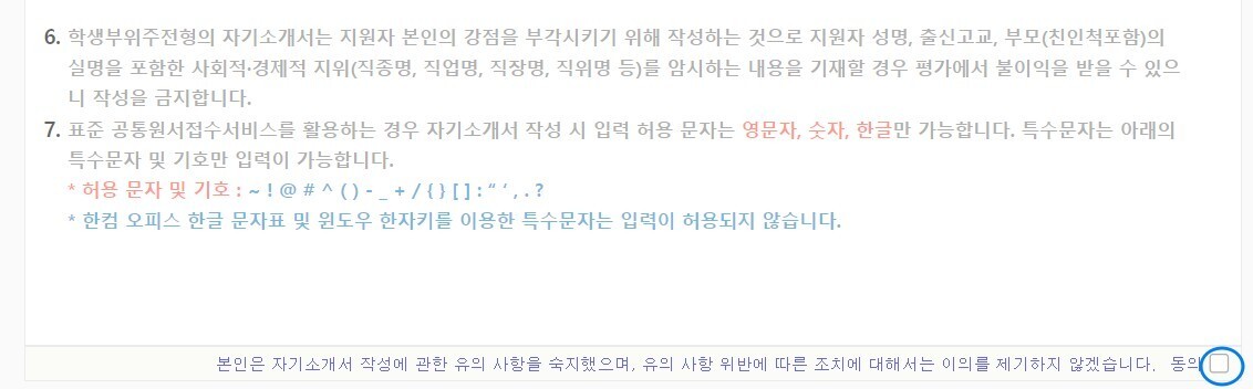 자소서 유의사항에 동의해주세요.