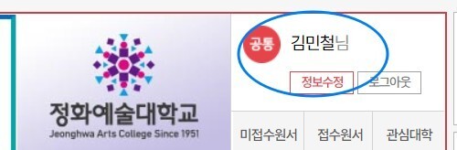 위의 '회원가입하기'를 클릭하시면 팝업 창이 사라지고 메인화면으로 돌아오게 됩니다. 그리고 오른쪽 위편에는 가입한 '이름'과 '공통'이라고 뜰 겁니다.